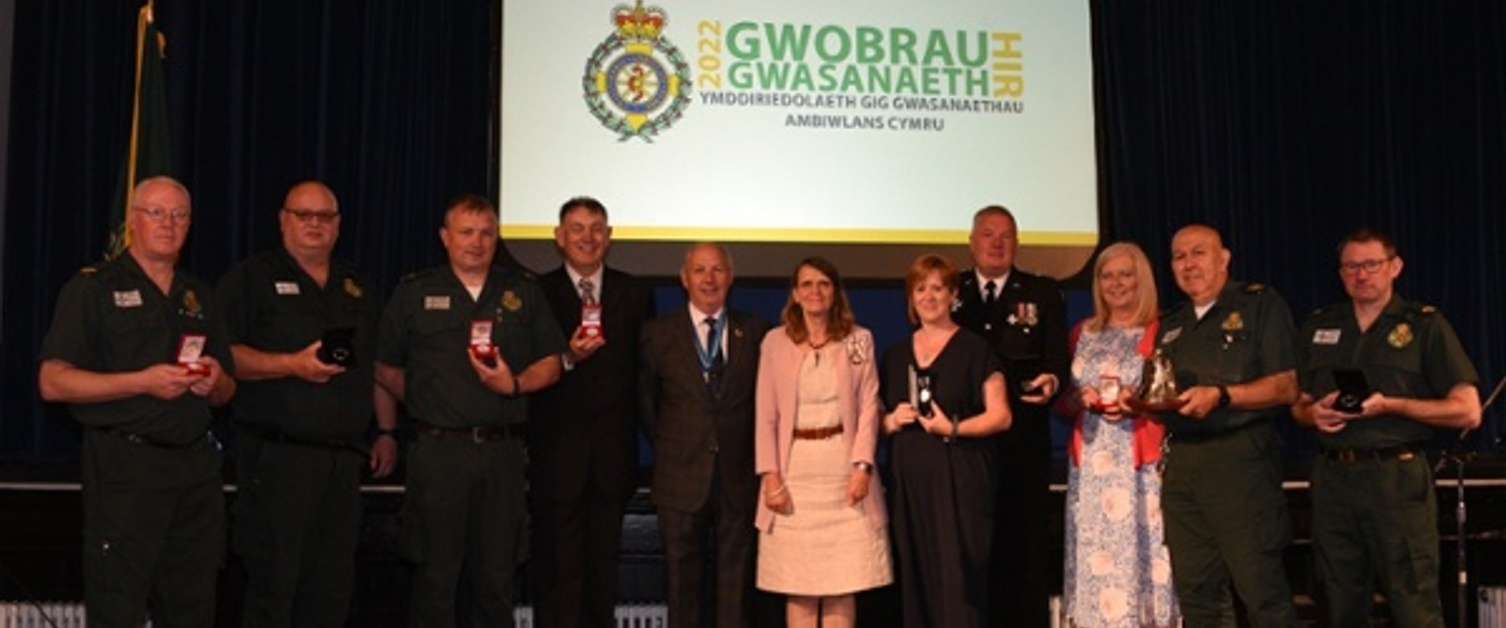 DATHLODD Gwasanaethau Ambiwlans Cymru eu staff a'u gwirfoddolwyr hir eu gwasanaeth mewn seremoni wobrwyo yn y canolbarth ddydd Mawrth.
