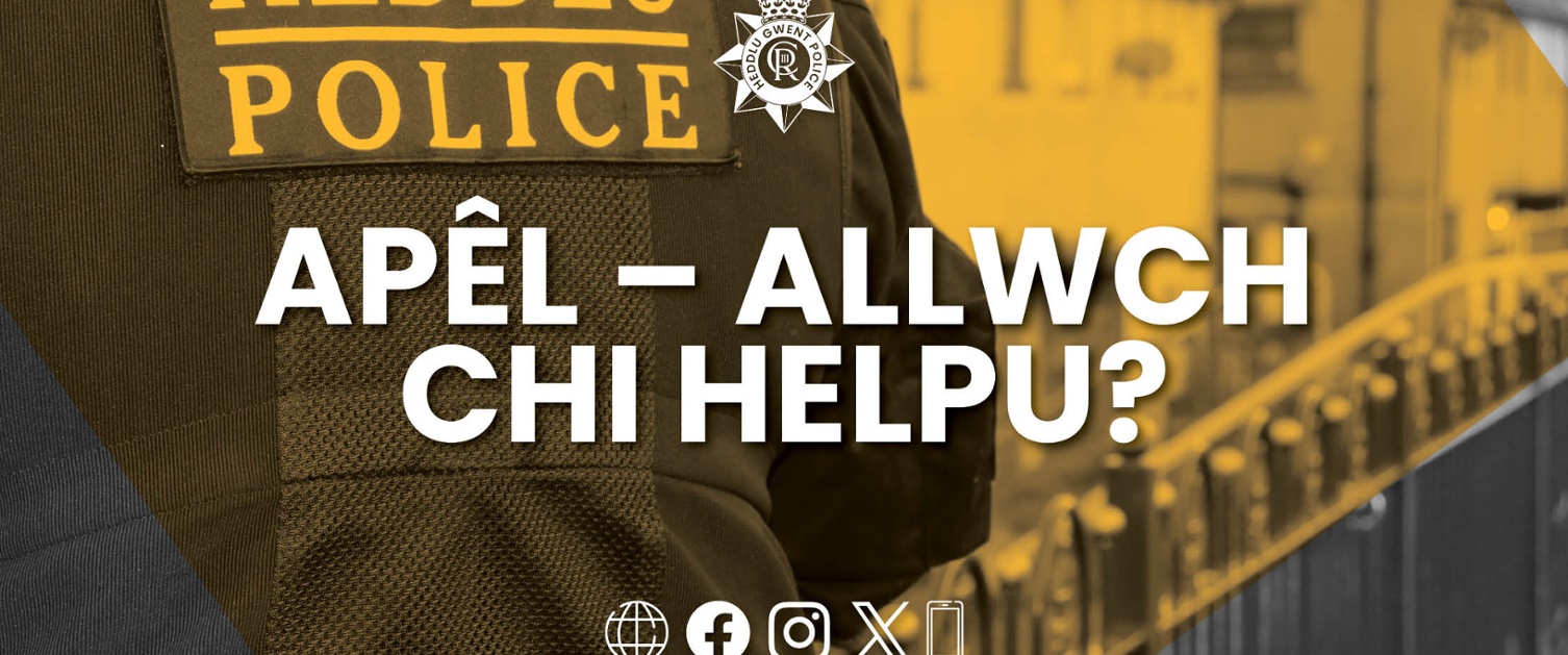 “Byddwn yn apelio ar unrhyw un sydd â gwybodaeth i gysylltu â’r heddlu.”