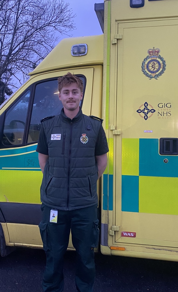 Yn ddim ond 25 oed, mae George Morgan yn un o'r gwirfoddolwyr iau i fod wedi symud ymlaen i rôl barhaol fel Technegydd Meddygol Brys.